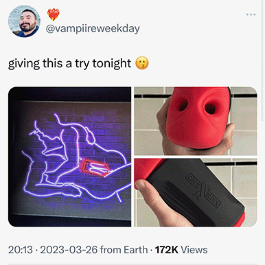 This is the best sex toy I’ve ever owned. I’ve tried other sleeves before, and they haven’t even come close. I’ve masturbated with it several times in the short time I’ve had it, and each time I am amazed at how incredibly good it feels. I can tell that it really was designed by someone who truly understands what penises like. The first time I tried it, I was unprepared for how quickly it would take me from 0 to 100–from erection to orgasm with very little foreplay. The second time I used it, I was more prepared for the effect it could have on me and was able to take a little more time to enjoy myself before orgasm.